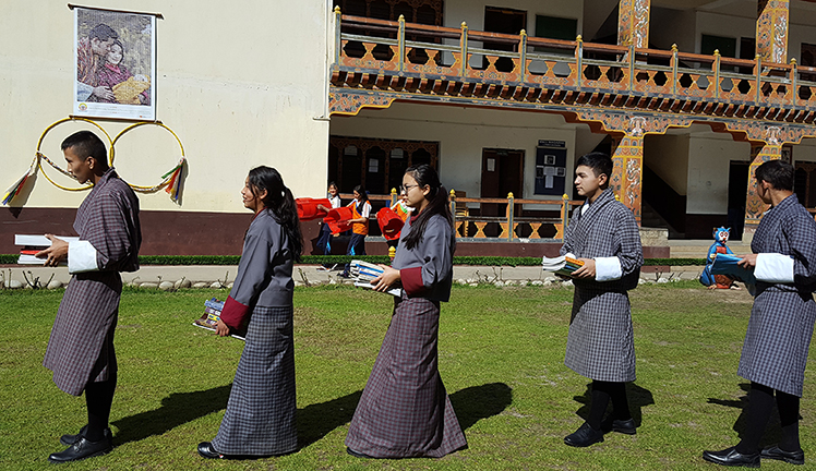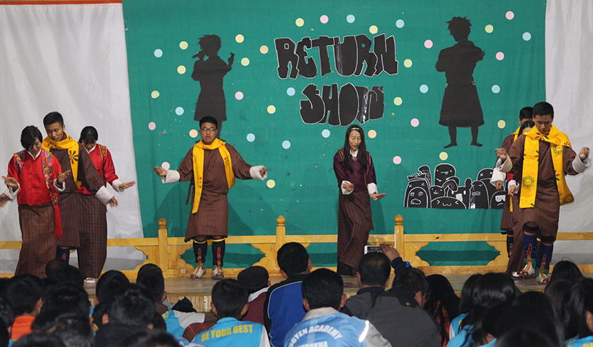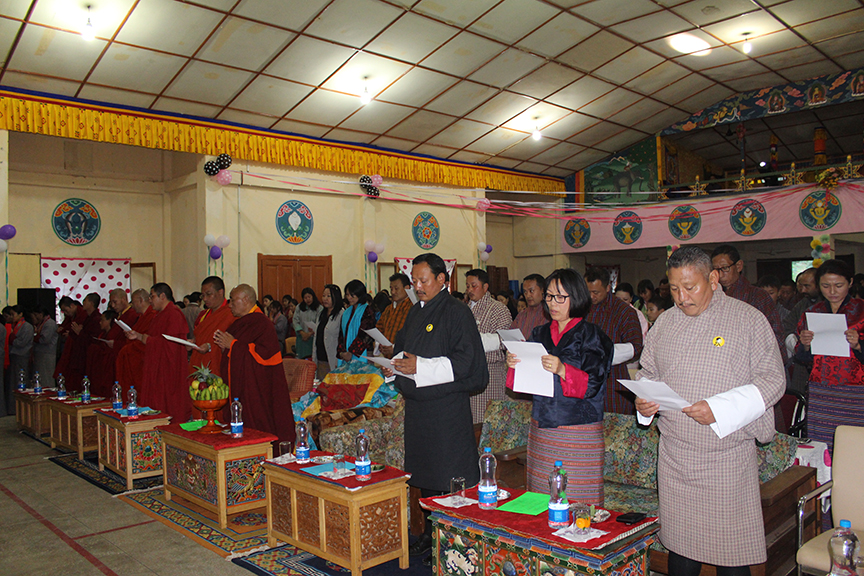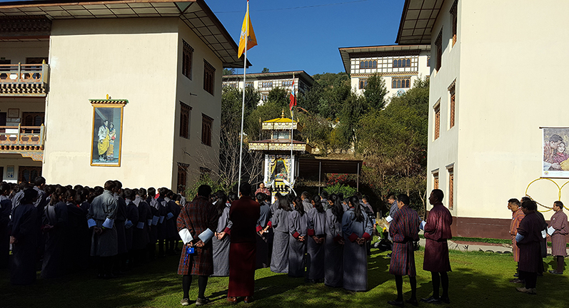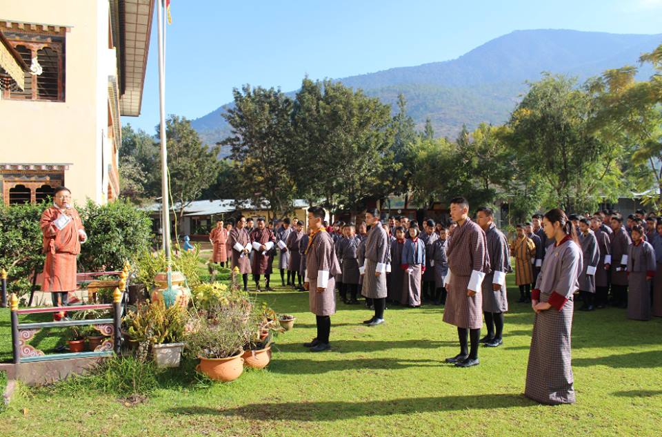The celebration commenced with Lungta Sangchoe and lighting of butter lamps at the Chhoekhang. The little feet had already made the biggest footprints in the hearts of people and so did the inspirational speech given by the Principal ignite the light during the morning assembly. The entire school then chanted the solemn prayer (Zhabten) dedicated to HRH Gyalsey and Their Majesties.