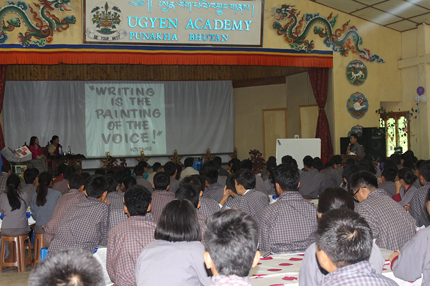 The passion for writing and reading opens one’s mind and reaches the height of greater dimensions. In order to encourage and inculcate writing and reading habits, creative writing workshop was conducted in Ugyen Accademy. Student representatives from neighbouring schools( Punakha CS, Khuruthang MSS and Darshiding HSS) also attended the programme.