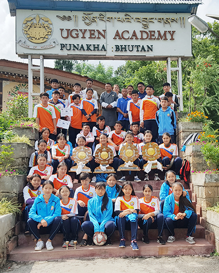 Ugyen Academy boasts of an exemplary sports culture.  It is the only school to offer scholarships to students who excel in extracurricular activities – sports, games, literary, cultural… Additionally, for talented students we provide special coaching in Football, Futsal, Basketball, Swimming, Badminton, Cricket, Table Tennis, Archery, Taekwando and Chess. It is again the only school to own an astro turf mini stadium with night lighting facilities for promotion of football that which is usually used by classes VII, VIII & IX. We also conduct Annual Swimming Gala.